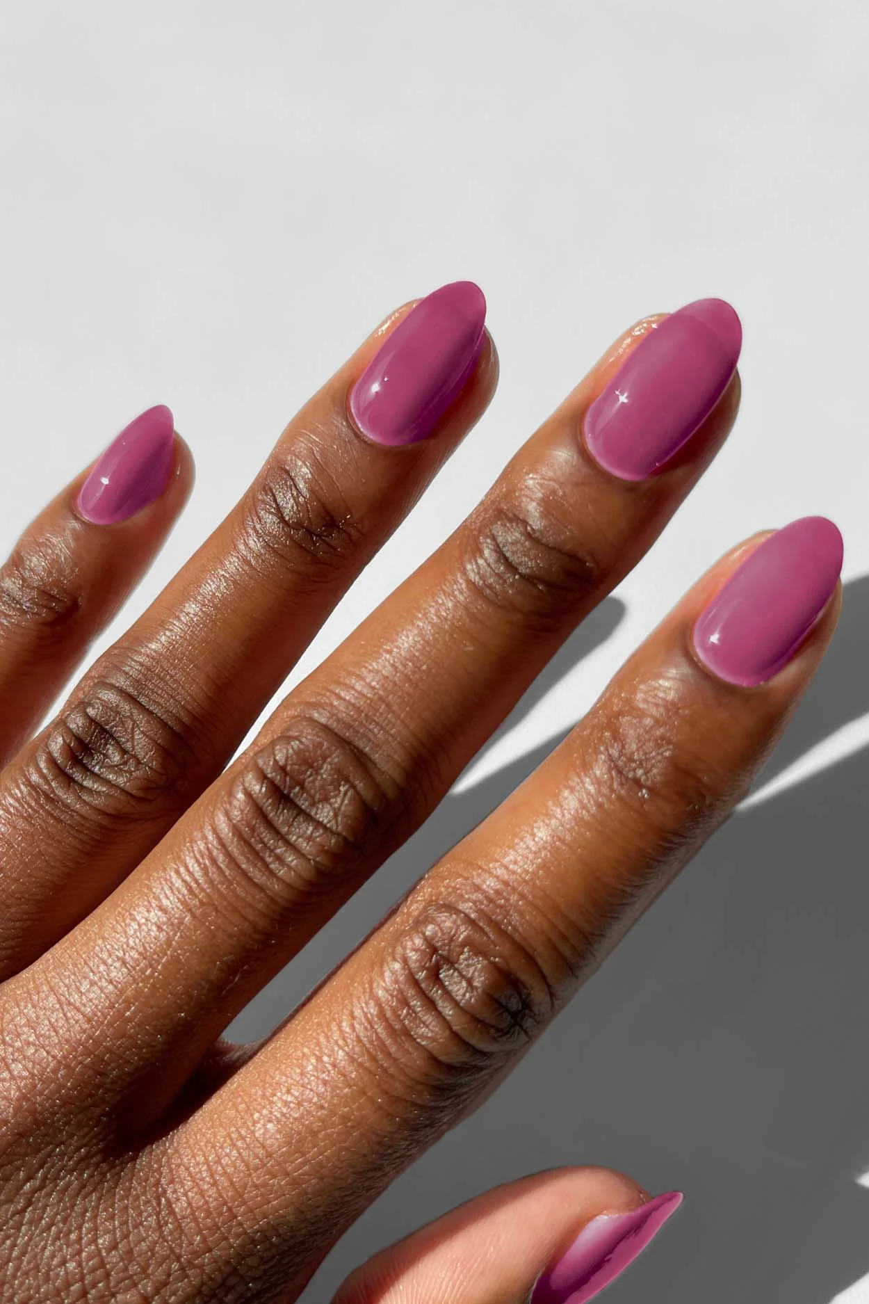Berry Jelly is a magenta purple jelly nail polish with a shiny, transparent finish.