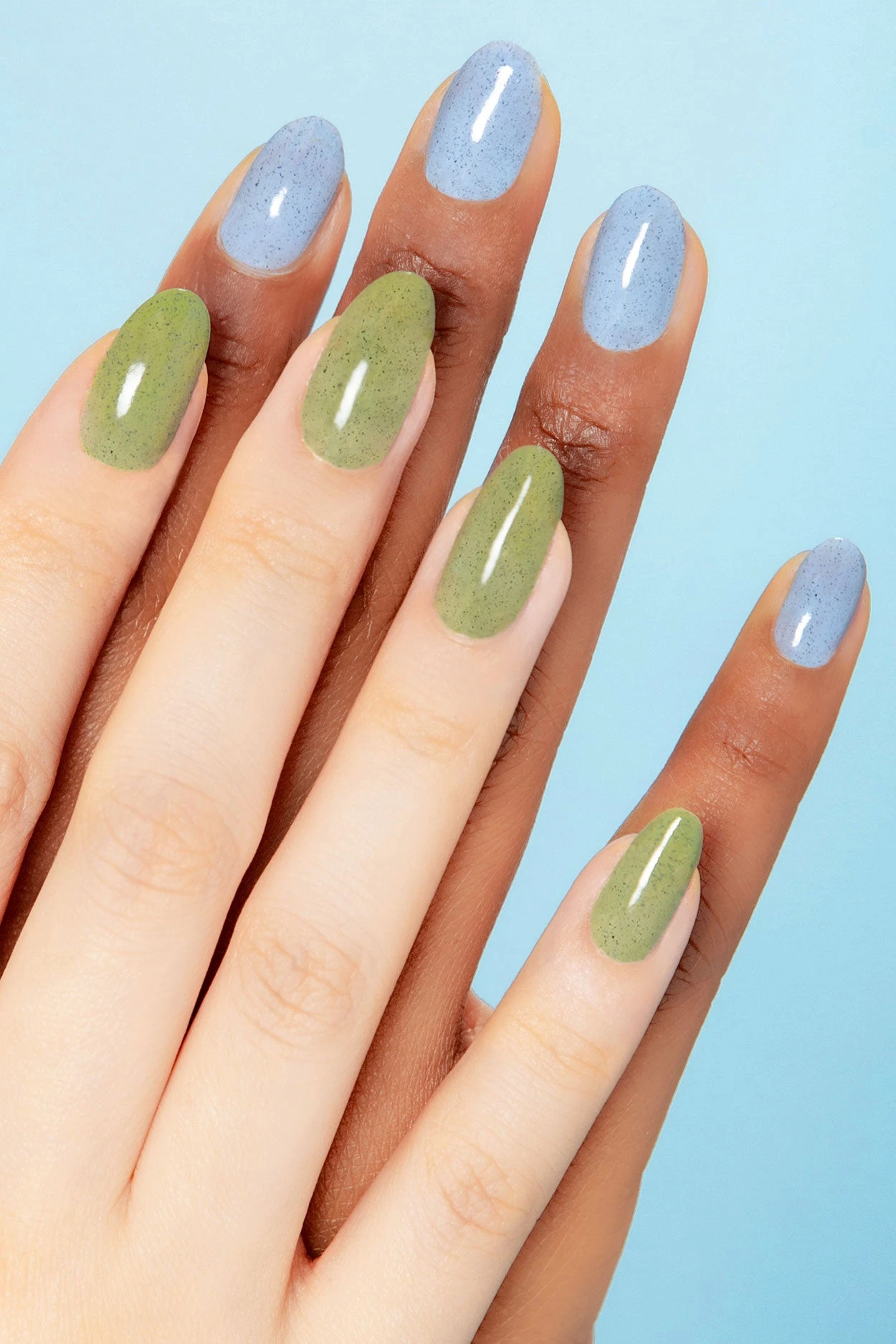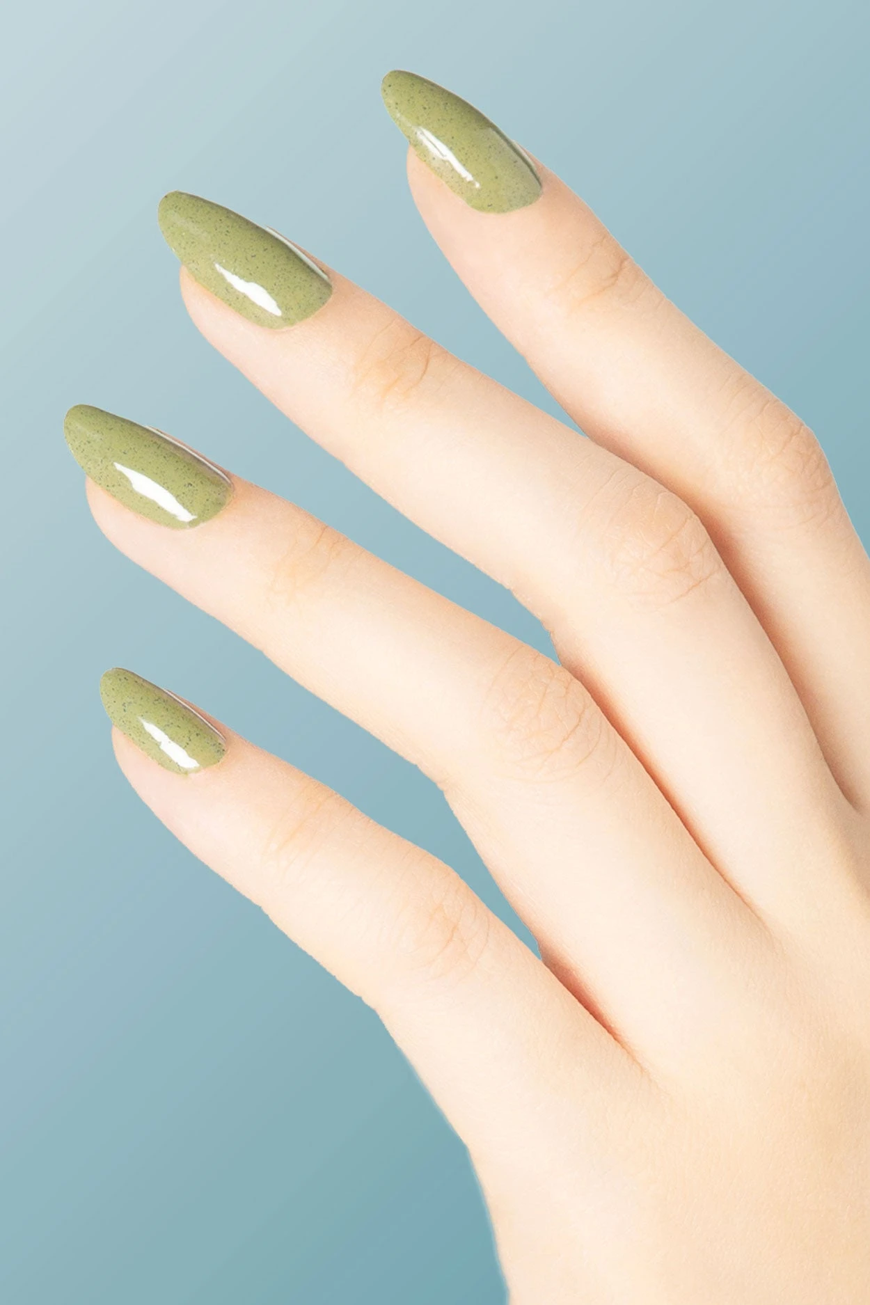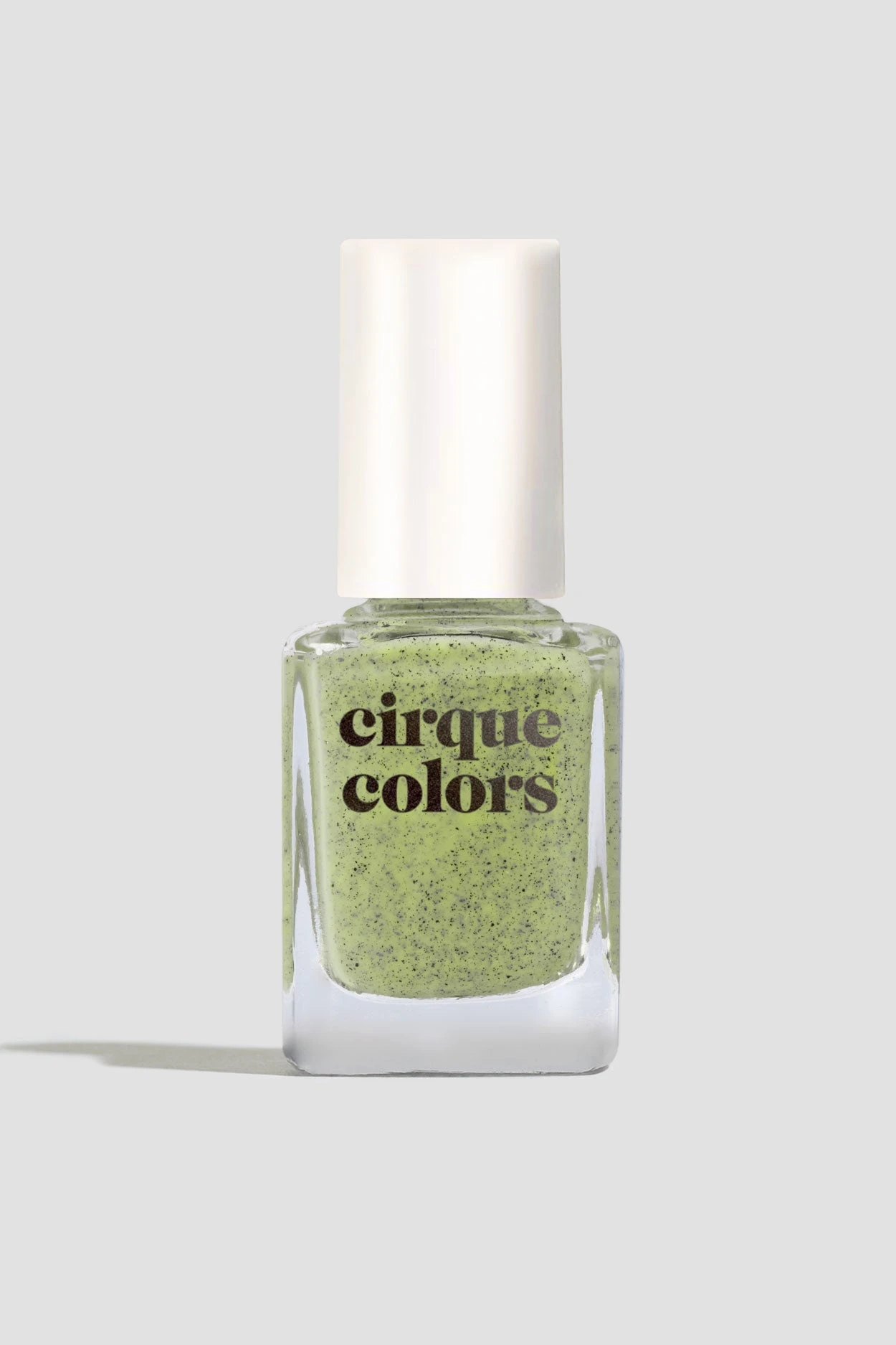 Pistachio is a light moss green nail polish with fine black specks. Our speckled polishes are contain irregular-shaped flake pigments which gives it a unique, spotted finish.