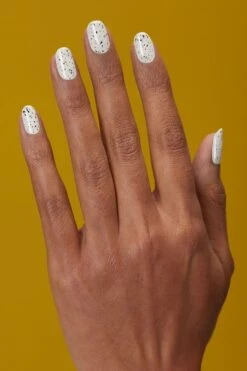 Robin is a light cornflower blue nail polish with fine black specks. Our speckled polishes are contain irregular-shaped flake pigments which gives it a unique, spotted finish.