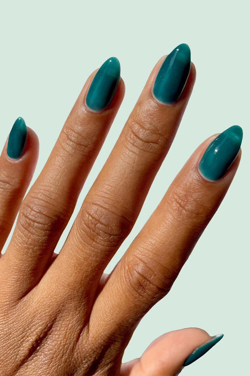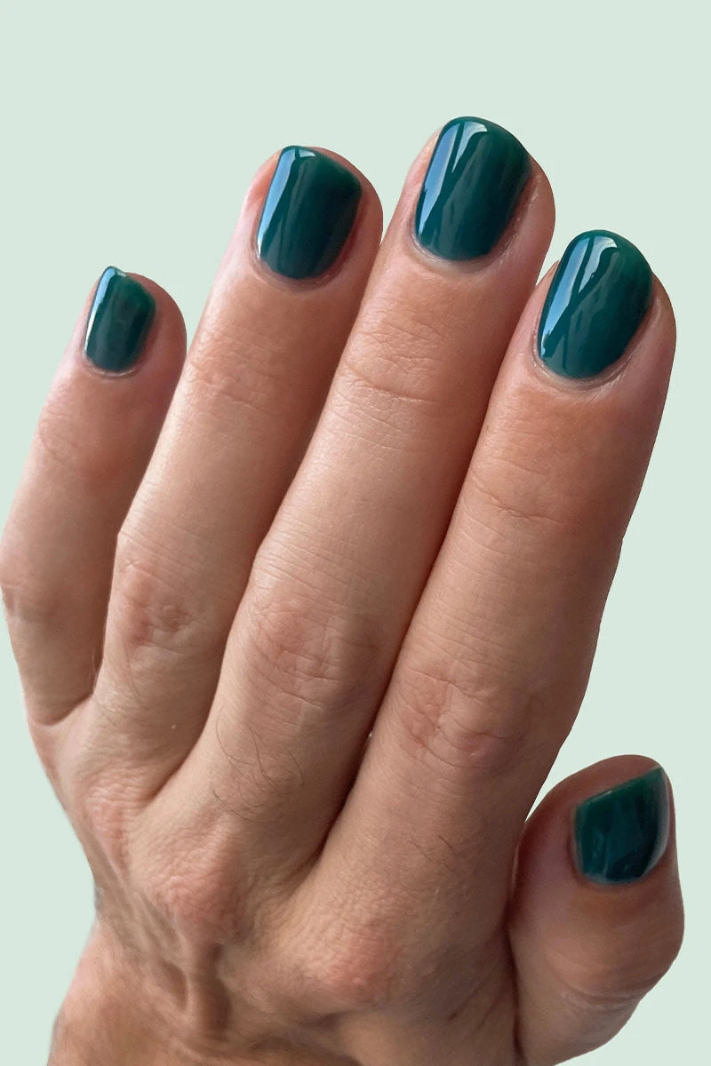 This color is inspired by the lovely leafy decorations that let you know the holidays are here. Freshly cut pine, glossy holly leaves, hanging mistletoe, and verdant garlands. Apply a couple of coats for a shiny and transparent finish, or paint it on freely for an abstract watercolor nail look.