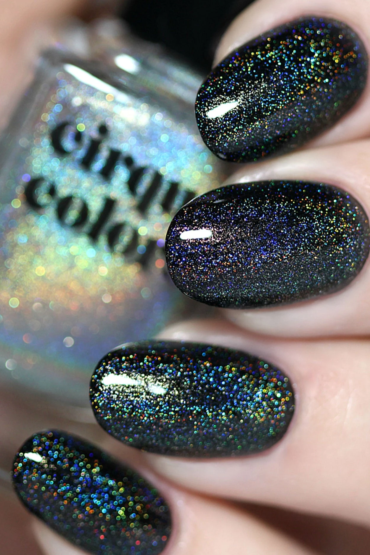 Note: Holographic polishes look best under direct light, such as sunlight or strong indoor bulbs, to bring out the prismatic rainbow effect.